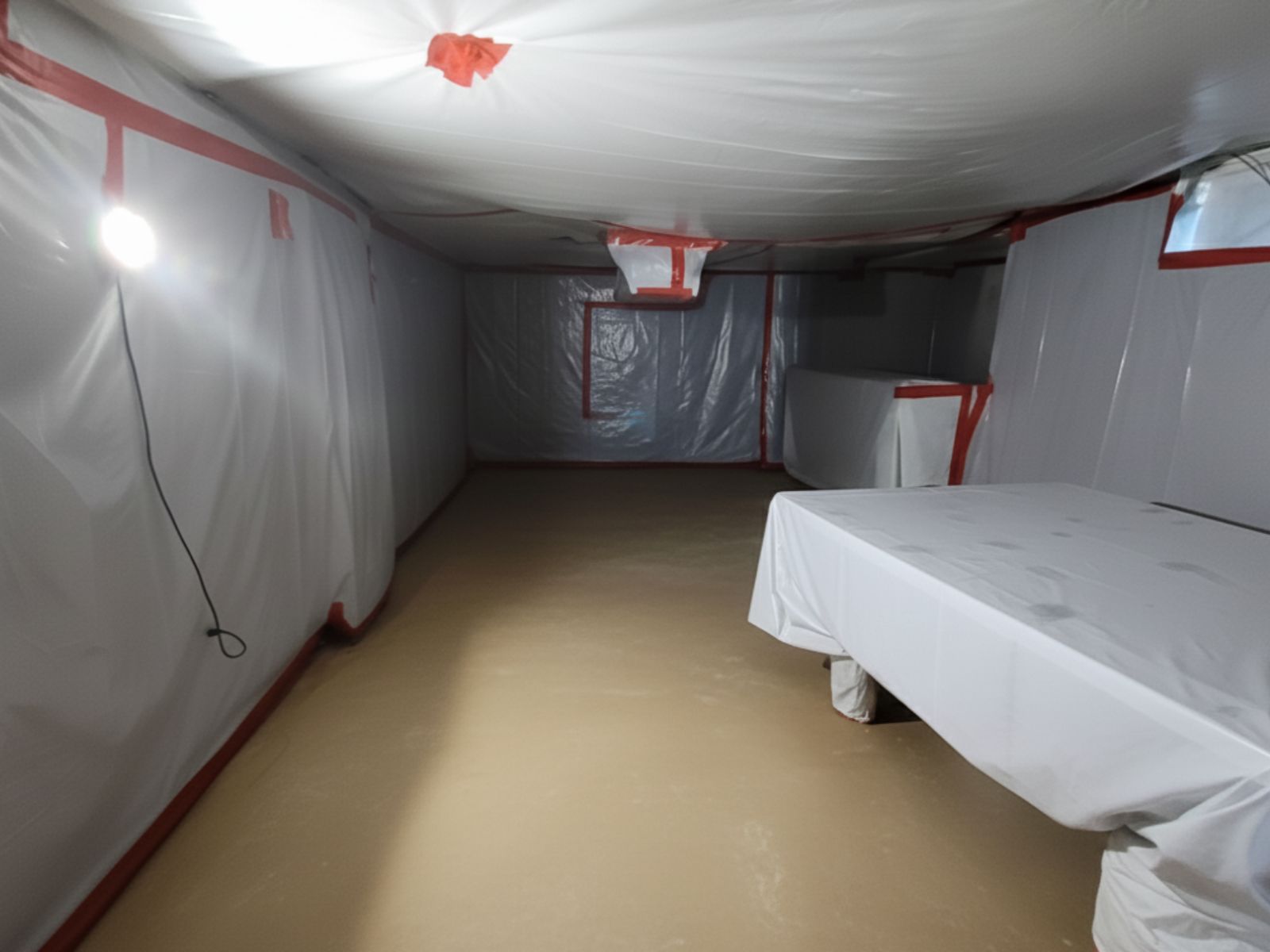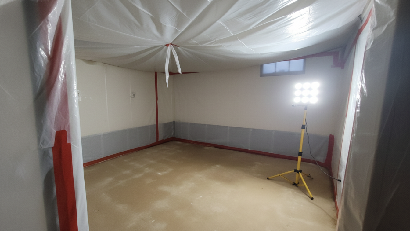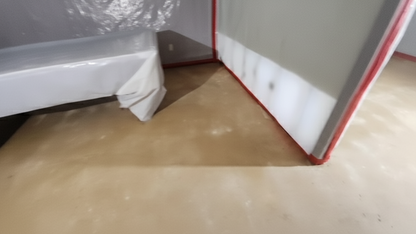 Concrete Slab Restoration – Following successful abatement and final air clearance testing, our skilled team cleaned and restored the concrete basement floor to pristine condition, removing all containment adhesives and residual materials.